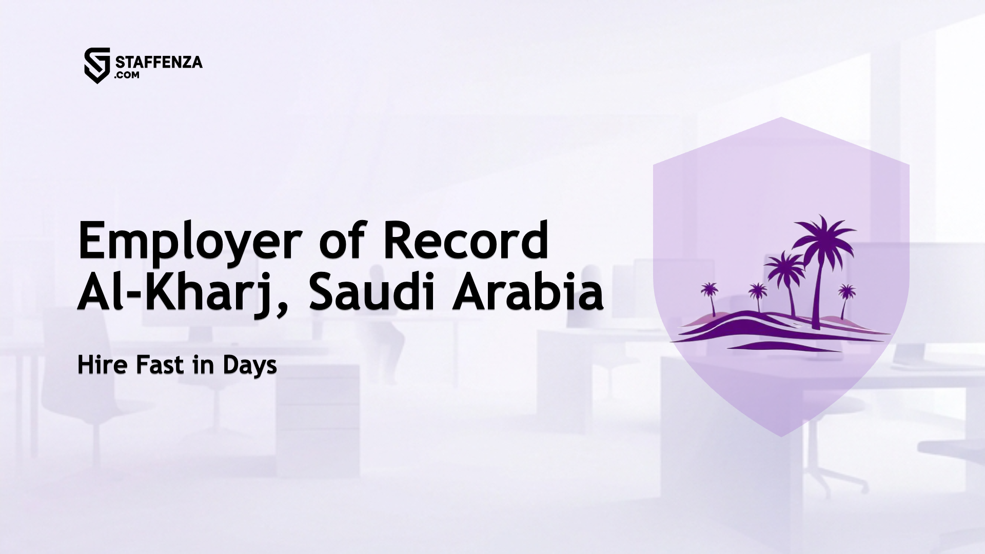 Staffenza provides Employer of Record services in Al-Kharj, Saudi Arabia. We sponsor Iqama, manage work visas, process payroll, remit GOSI, and ensure Saudization and labor compliance. You direct daily work while we handle employer duties and HR administration.