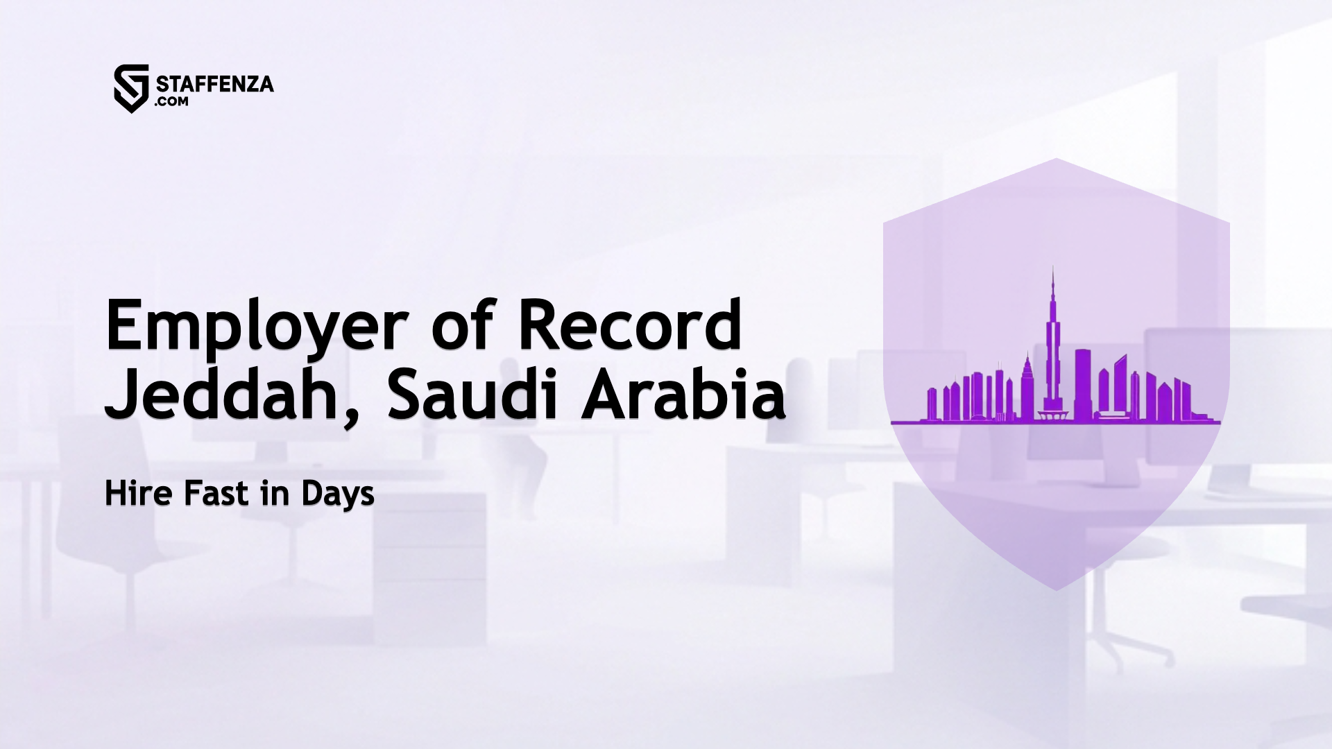 Staffenza provides Employer of Record services in Jeddah, Saudi Arabia. We act as your local legal employer and sponsor. We run payroll in Saudi riyal, manage GOSI and iqama processing, payroll tax and VAT compliance, and draft employment contracts. You retain operational control of your team.