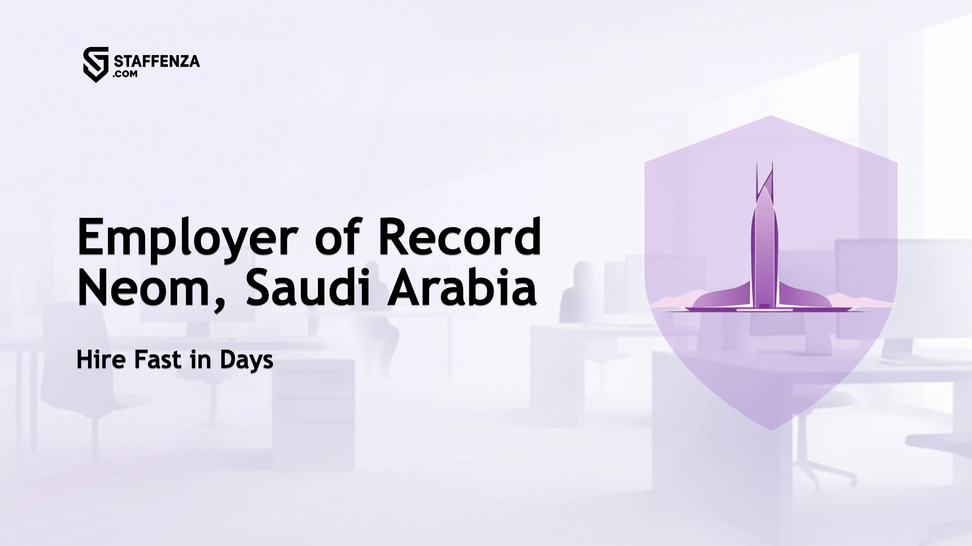 Staffenza provides Employer of Record services for NEOM, Saudi Arabia. We issue local employment contracts, run payroll in SAR, manage GOSI contributions, process work visas and iqama, and handle VAT and Zakat reporting for your hires.
